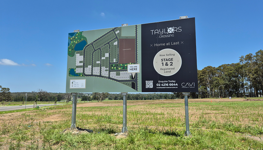 CAVI Property engaged Foundry Three across two live land developments in the Illawarra — Fair Views Estate and Taylors Crossing. Our work included a refresh of the Taylors Crossing brand, along with website updates, onsite signage, collateral design, and treated masterplans and stageplans to better support project presentation and sales.